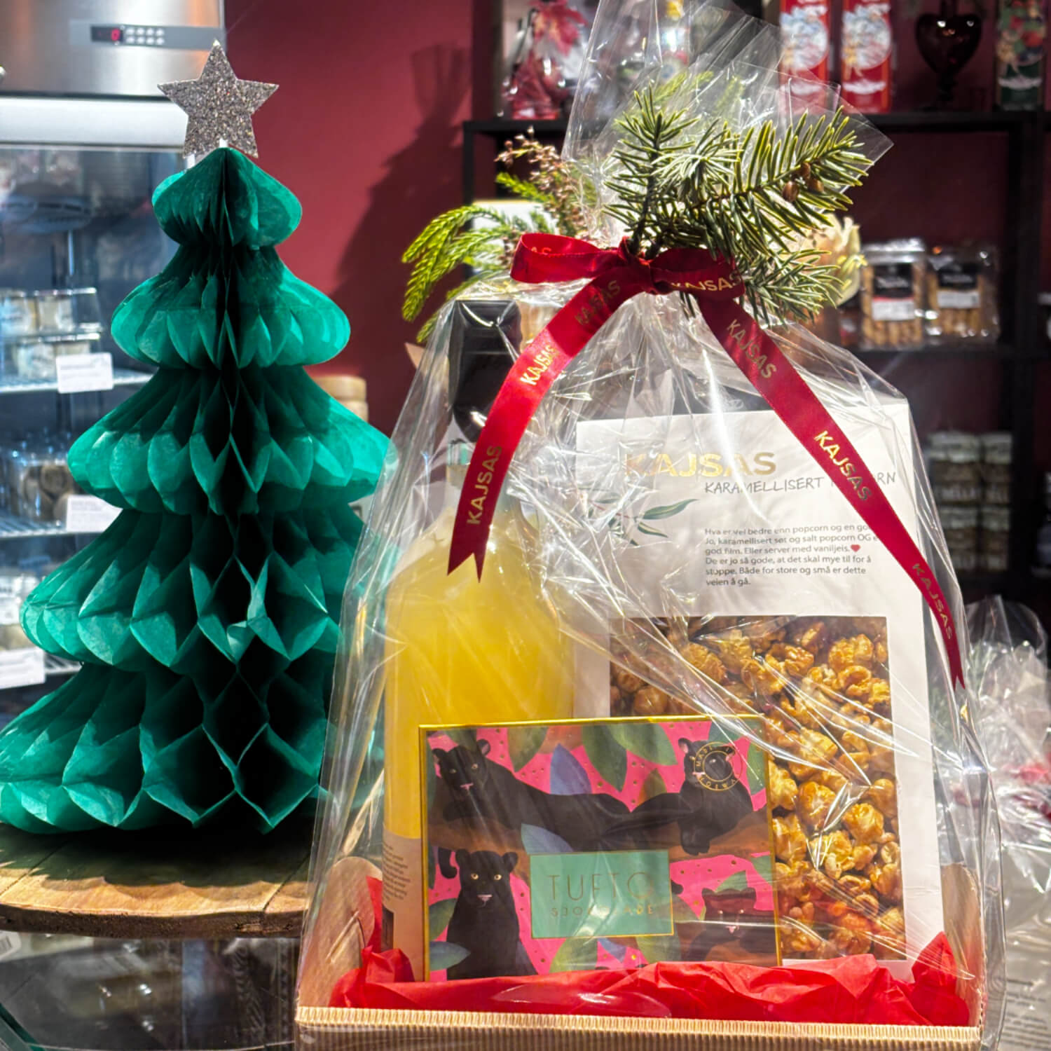 Kajsas Søte julegave! Kajsas Ringi, Karamellisert popcorn og Tufto sjokoladeplate.
