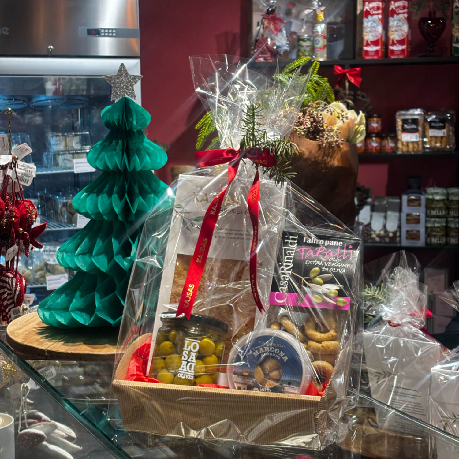 En gave alle blir glade for å få! Alt du trenger til en koselig kveld: Kajsas Parmesanchips, fantastisk gode Manzilla Oliven, Marcona mandler og Tarelli kjeks.